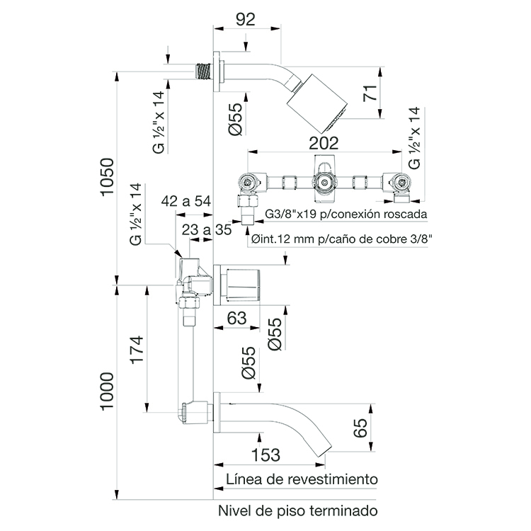 Grifería de Ducha c/transferencia p/embutir Oberá FV 103/G5 Cromo